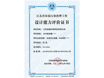 江蘇省環境污染治理工程設計能力評價證書-丙級